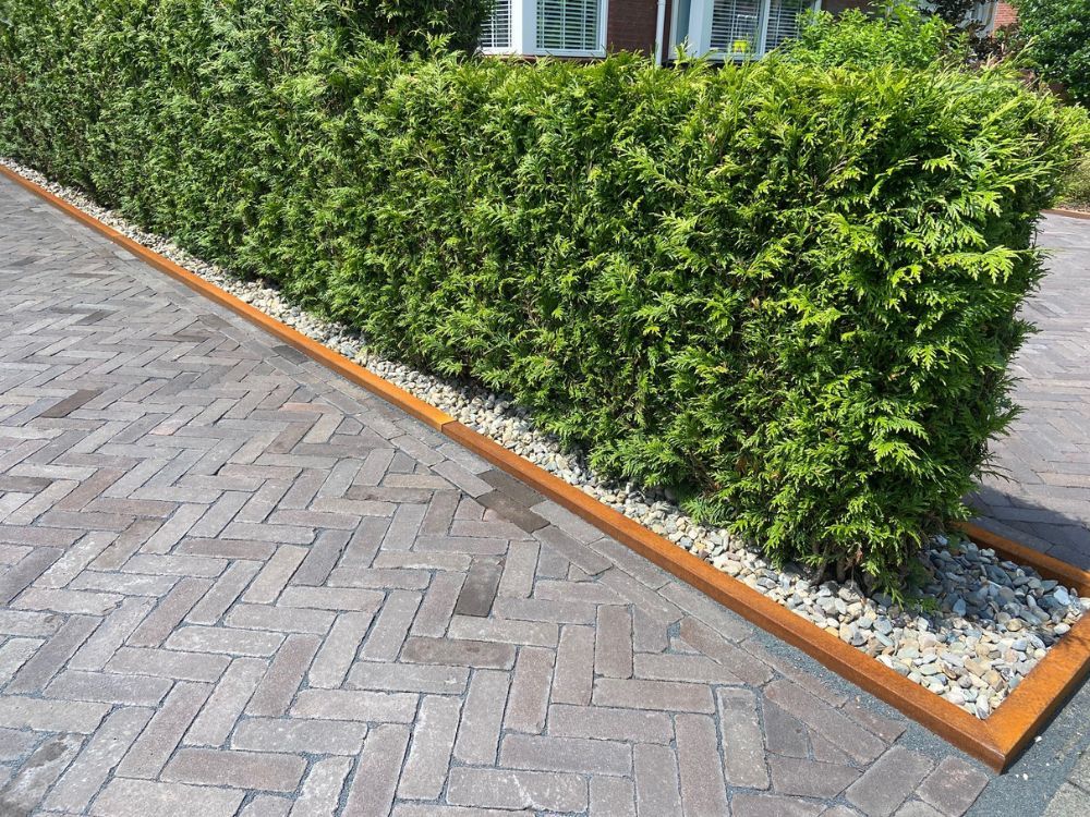 Dzięki obrzeżom rabatowym utrzymasz różne części swojego ogródka frontowego w porządku i przejrzystości. Zapewniają one, że podjazd jest wyraźnie oddzielony od innych elementów, takich jak żwir czy donice. Obrzeża rabatowe z cortenowej stali nadają również Twojemu ogródkowi frontowemu nowoczesny i odważny wygląd, zapewniając schludne, estetyczne wykończenie.