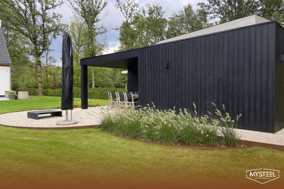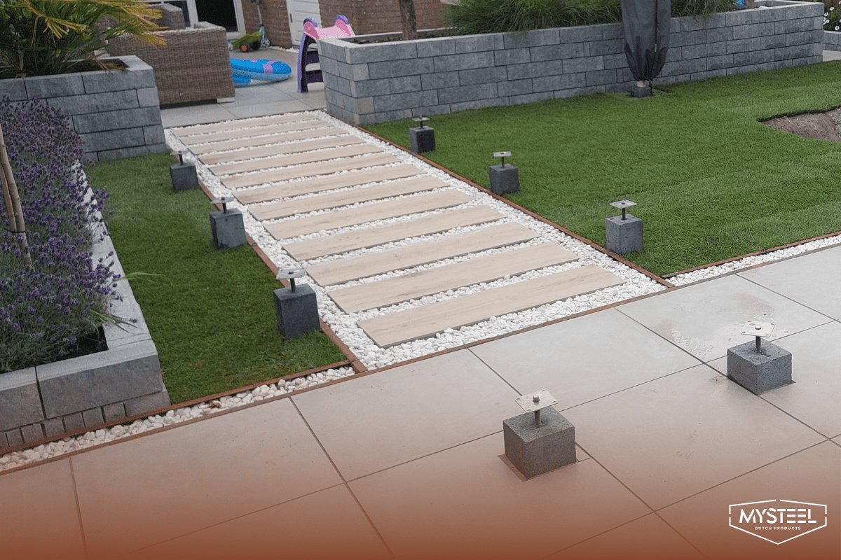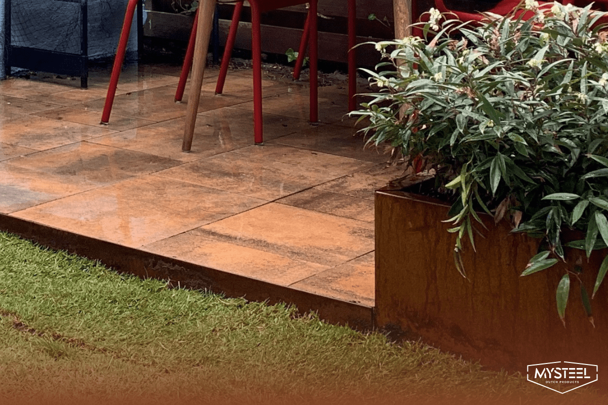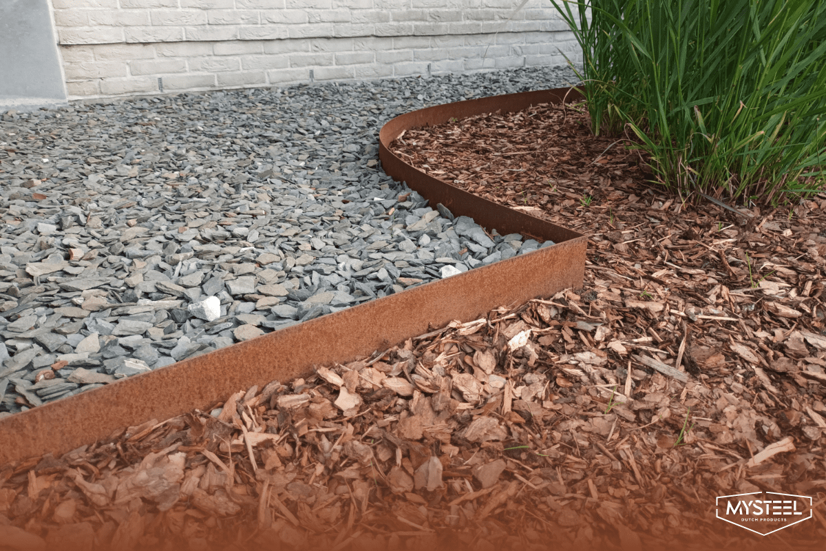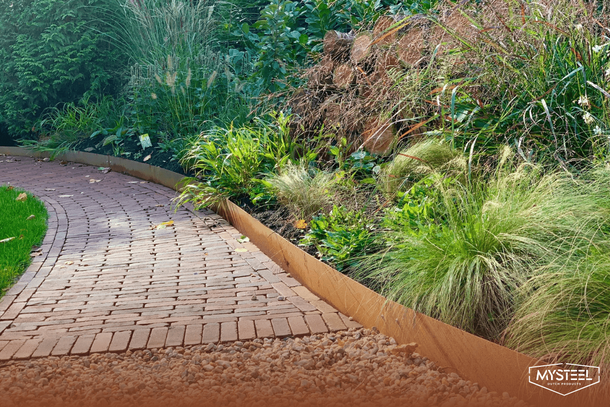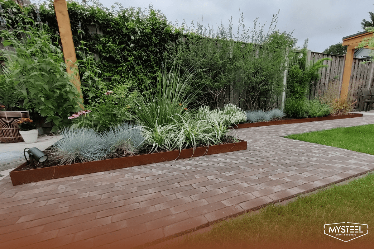- Obrzeża są dostępne ze stali cortenowej i stali ocynkowanej.