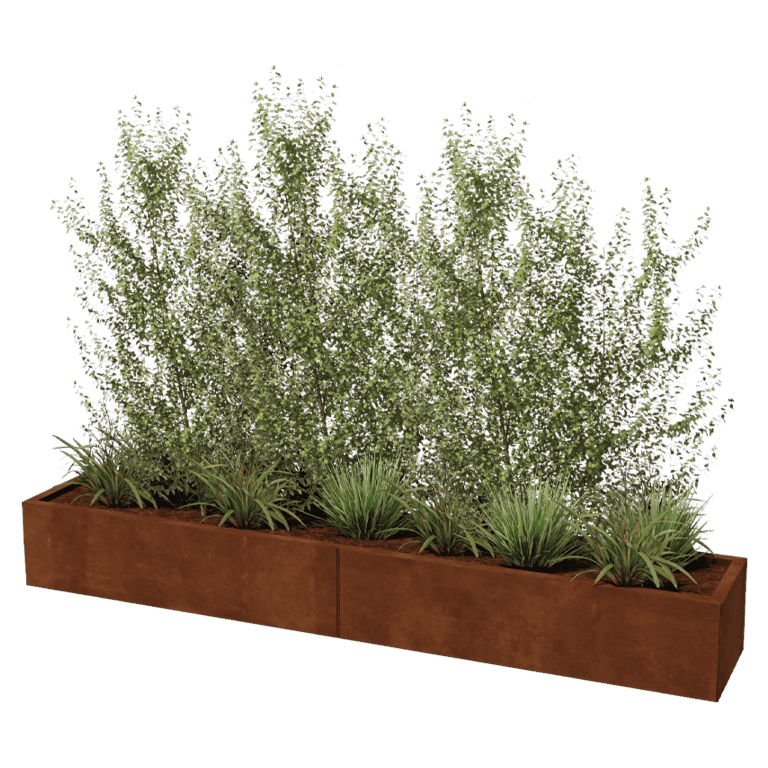 Panele naszych modułowych doniczek są wykonane z wysokiej jakości stali Corten-A. Ten rodzaj metalu ma unikalną cechę, że tworzy bardzo gęstą warstwę tlenku (warstwa rdzy) na powierzchni. W ten sposób nie ma możliwości przerdzewienia. Dzięki gęstej warstwie tlenku materiał leżący głębiej jest chroniony przed tlenem, co znacznie spowalnia proces utleniania, podczas gdy korozja nadal postępuje. Doniczka z stali corten jest dostarczana w kolorze szarym, w stanie nieutlenionym. Proces rdzewienia zaczyna się po kilku tygodniach do 2 miesięcy, nie jest wymagana żadna obróbka. Podczas procesu rdzewienia doniczka może zostawiać ślady. Stal Corten to stop metali składający się z żelaza, do którego dodano miedź, fosfor, krzem, nikiel i chrom.
