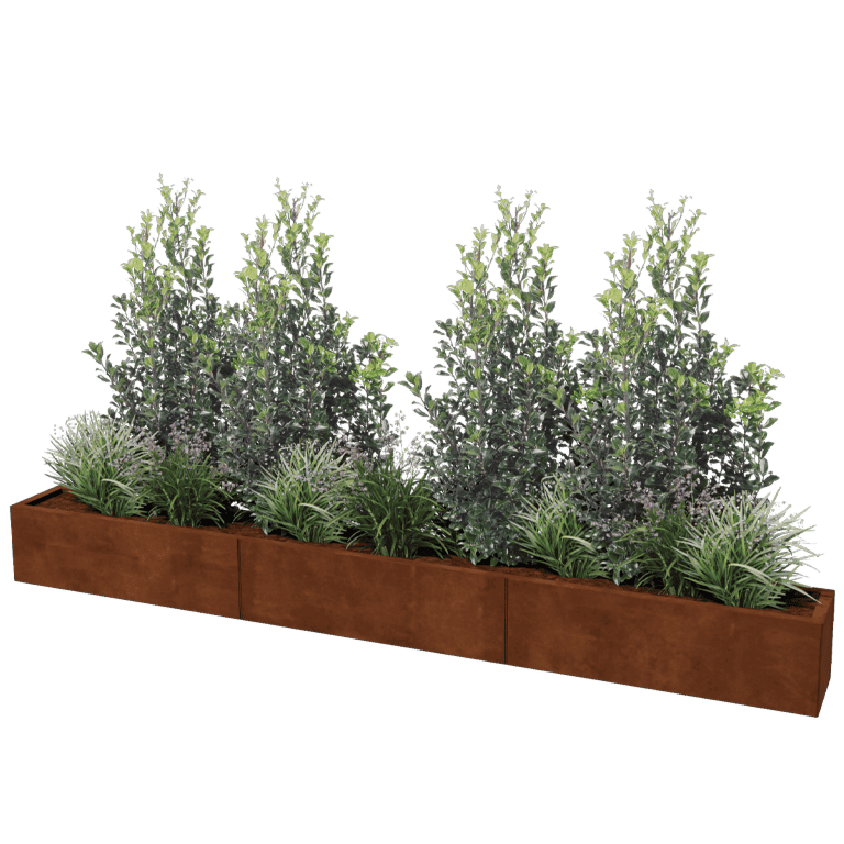 Panele naszych modułowych donic są wykonane z wysokiej jakości stali Corten-A. Ten rodzaj metalu ma unikalną cechę, że tworzy bardzo gęstą warstwę tlenku (warstwa rdzy) na powierzchni. W związku z tym nie ma możliwości przerdzewienia. Dzięki gęstej warstwie tlenku materiał leżący głębiej jest chroniony przed tlenem, co znacznie spowalnia proces utleniania, podczas gdy korozja nadal postępuje. Donica z stali corten jest dostarczana w kolorze szarym, w stanie nieutlenionym. Proces rdzewienia zaczyna się po kilku tygodniach do 2 miesięcy, nie jest wymagana żadna obróbka. W trakcie procesu rdzewienia donica może zostawiać ślady. Stal Corten to stop metalu składający się z żelaza, do którego dodano miedź, fosfor, krzem, nikiel i chrom.