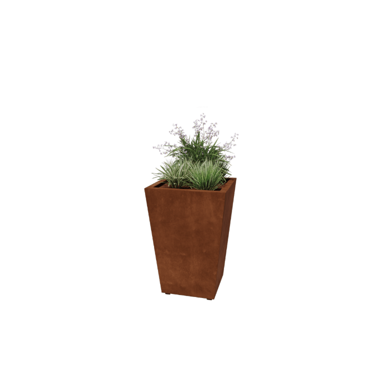 Piramidowa doniczka to unikalny kształt doniczki ze stali, który dodaje eleganckiego elementu w Twoim ogrodzie. Doniczka jest wykonana ze stali corten w kształcie stożka. Dzięki swojemu pomarańczowo-brązowemu kolorowi, który z czasem naturalnie się pojawia, ma elegancki i ciepły wygląd. Dzięki swojemu unikalnemu kształtowi ta doniczka ze stali corten jest bardzo odpowiednia do tworzenia różnych kreatywnych kompozycji, wypełniając trudne przestrzenie w ogrodzie. Lub aby bardzo łatwo wypełnić kąt w ogrodzie zielenią. Czy już wiesz, gdzie chcesz postawić tę wyjątkową doniczkę w kolorze rdzy?