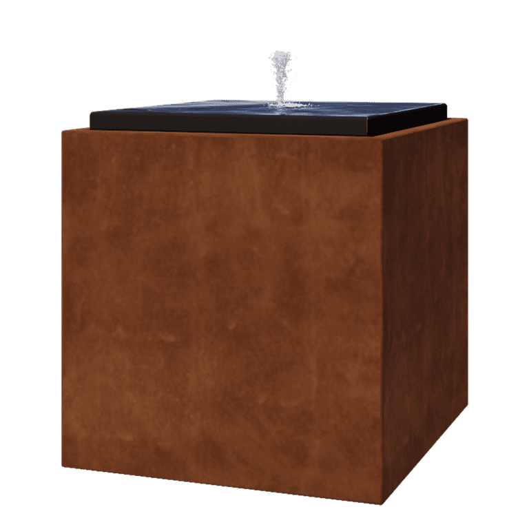Ozdoba wodna jest dostarczana wraz z odpowiednią pompą z kablem. Pompa wewnątrz zbiornika powoduje, że woda jest pompowana do góry. Następnie woda spływa po wewnętrznej płycie, a potem ponownie wraca do zbiornika. Przy wodnej ozdobie ze stali corten przez pierwsze miesiące konieczne będzie wymienianie wody, aż do pełnego utlenienia się rdzy. W przypadku mrozu pompa powinna być wyłączona. Opcjonalnie można wybrać oświetlenie LED.