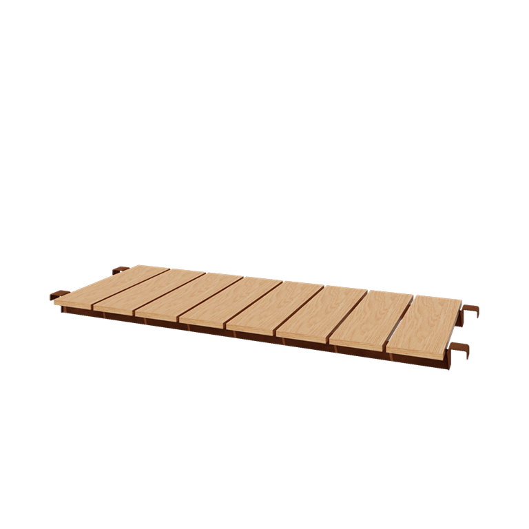 Te wsporniki ławki są wykonane z wysokiej jakości blachy stalowej Corten-A. Ten rodzaj metalu ma unikalną cechę, że tworzy bardzo gęstą warstwę tlenku (warstwę rdzy). W związku z tym niemożliwe jest przerdzewienie. Dzięki gęstej warstwie tlenku, materiał leżący głębiej jest chroniony przed tlenem, co znacząco spowalnia proces utleniania, podczas gdy korozja wciąż postępuje. Wspornik stalowy Corten jest dostarczany w stanie nienałożonej rdzy, w szarym kolorze metalu. Rozpoczęcie procesu rdzewienia zaczyna się w pierwszych 2 miesiącach, nie jest do tego potrzebne żadne leczenie. W trakcie procesu rdzewienia doniczka może zostawić ślady. Stal Corten to stop metali, który składa się z żelaza, a także miedzi, fosforu, krzemu, niklu i chromu.