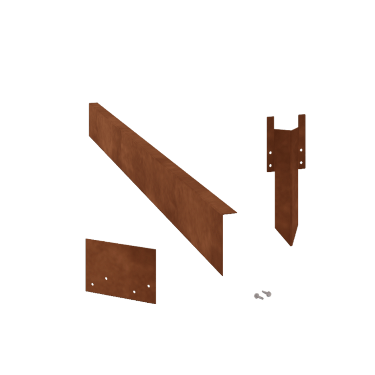 Materiał Te obrzeża są wykonane z wysokiej jakości stali Corten-A. Ten rodzaj metalu charakteryzuje się unikalną właściwością, że tworzy bardzo gęstą warstwę tlenku (warstwę rdzy). Przez to proces rdzewienia jest niemożliwy. Dzięki gęstej warstwie tlenku chronione jest głębiej położony materiał przed dostępem tlenu, co znacznie opóźnia utlenianie, podczas gdy korozja nadal postępuje. Obrzeże jest dostarczane bez rdzy, w szarym metalicznym kolorze. Proces rdzewienia rozpoczyna się w ciągu pierwszych 2 miesięcy, nie wymaga to żadnego specjalnego przygotowania. W trakcie procesu rdzewienia obrzeże może oddawać barwę. Stal Corten to stop metali składający się z żelaza, do którego dodano miedź, fosfor, krzem, nikiel i chrom.