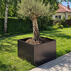 Panele tych doniczek są wykonane z wysokiej jakości stali ocynkowanej i następnie malowane proszkowo w dowolnym kolorze RAL na zamówienie. To jest robione specjalnie dla Ciebie. Dzięki temu zawsze masz doniczkę najwyższej jakości. Malowanie proszkowe to proces elektrostatyczny, w którym proszek jest nakładany na metal za pomocą pistoletu natryskowego. Podczas utwardzania w piecu cząsteczki proszku najpierw stają się płynne pod wpływem ciepła. Następnie stają się lepkie, a na końcu utwardzają się w piękną, trwałą powłokę. Dzięki powłoce doniczka jest niezwykle odporna na promieniowanie UV. Ta doniczka pasuje do każdego ogrodu i jest prawdziwą ozdobą.
