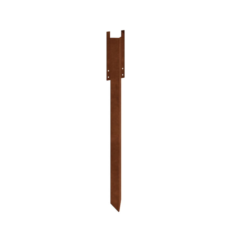 Materiał Ten kołek gruntowy jest wykonany z wysokiej jakości blachy stalowej Corten-A. Ten rodzaj metalu charakteryzuje się unikalną właściwością, że tworzy bardzo gęstą warstwę tlenku (warstwę rdzy). Przez to proces rdzewienia jest niemożliwy. Dzięki gęstej warstwie tlenku, głębiej położony materiał jest chroniony przed dostępem tlenu, co znacznie opóźnia utlenianie, podczas gdy korozja nadal postępuje. Kołek gruntowy jest dostarczany bez rdzy, w szarym metalicznym kolorze. Proces rdzewienia rozpoczyna się w ciągu pierwszych 2 miesięcy, nie wymaga to żadnego specjalnego zabezpieczenia. W trakcie procesu rdzewienia brzeg ogrodowy może się odbarwiać. Stal Corten to stop metali składający się z żelaza, do którego dodano miedź, fosfor, krzem, nikiel i chrom.
